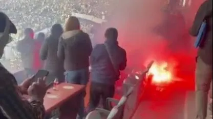 Pero, además, mientras se jugaba el encuentro, desde la tribuna Ámsterdam también se lanzó una bengala que cayó en la Colombes, en el sector cercano a la América.