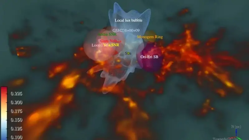 El término Burbuja Caliente Local “se refiere a la ubicación donde reside el Sistema Solar (por ello ‘local’)”, explicó a BBC Mundo Michael Yeung, estudiante de doctorado del Instituto Max Planck de Física Extraterrestre o MPE, en el sur de Alemania, y autor principal del estudio.