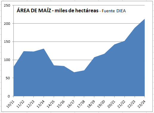 La Dirección de Estadísticas Agropecuarias (DIEA) del MGAP divulgó su Encuesta de Primavera 2023 con los nuevos datos correspondientes al desempeño de los cultivos de invierno en Uruguay, y las intenciones de siembra en cultivos de verano. Como ya se preveía por los datos preliminares que fueron surgiendo desde las chacras en las distintas zonas de cultivo, el trigo marcó un récord histórico de rendimiento superando las 5 toneladas por hectárea y alcanzando 5.037 kg/ha, según la estimación oficial. Es un notable avance en un cultivo clave para el Uruguay, tanto históricamente como en el momento actual .El rendimiento récord también refleja un efecto año: la durísima sequía del verano pasado mineralizó muchos nutrientes que estaban integrados en la materia orgánica del suelo – principalmente nitrógeno- y los hizo disponibles para los cultivos en cuanto volvieran las lluvias. Técnicos y productores han visto como en chacras donde se decidió no ir demasiado a fondo con la fertilización, de todas maneras los cultivos desplegaron un verde intenso notable. Esto se ha visto tanto en cultivos de invierno como en los cultivos de verano, que están en pleno desarrollo.