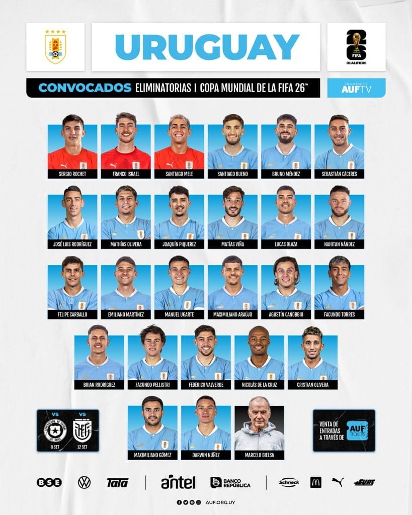 Estos son los 25 jugadores elegidos por Marcelo Bielsa para el debut en el camino al Mundial 2026.