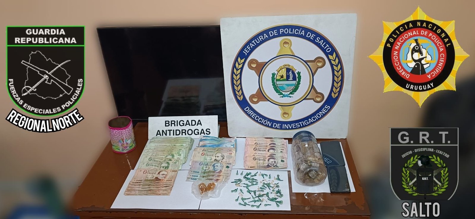 Salto a solicitud de Fiscalía de Segundo Turno, para fincas ubicadas en diferentes barrios de la ciudad, donde se procedió a la detención de 4 personas: dos femeninas mayores de edad, un masculino mayor y un menor de edad.