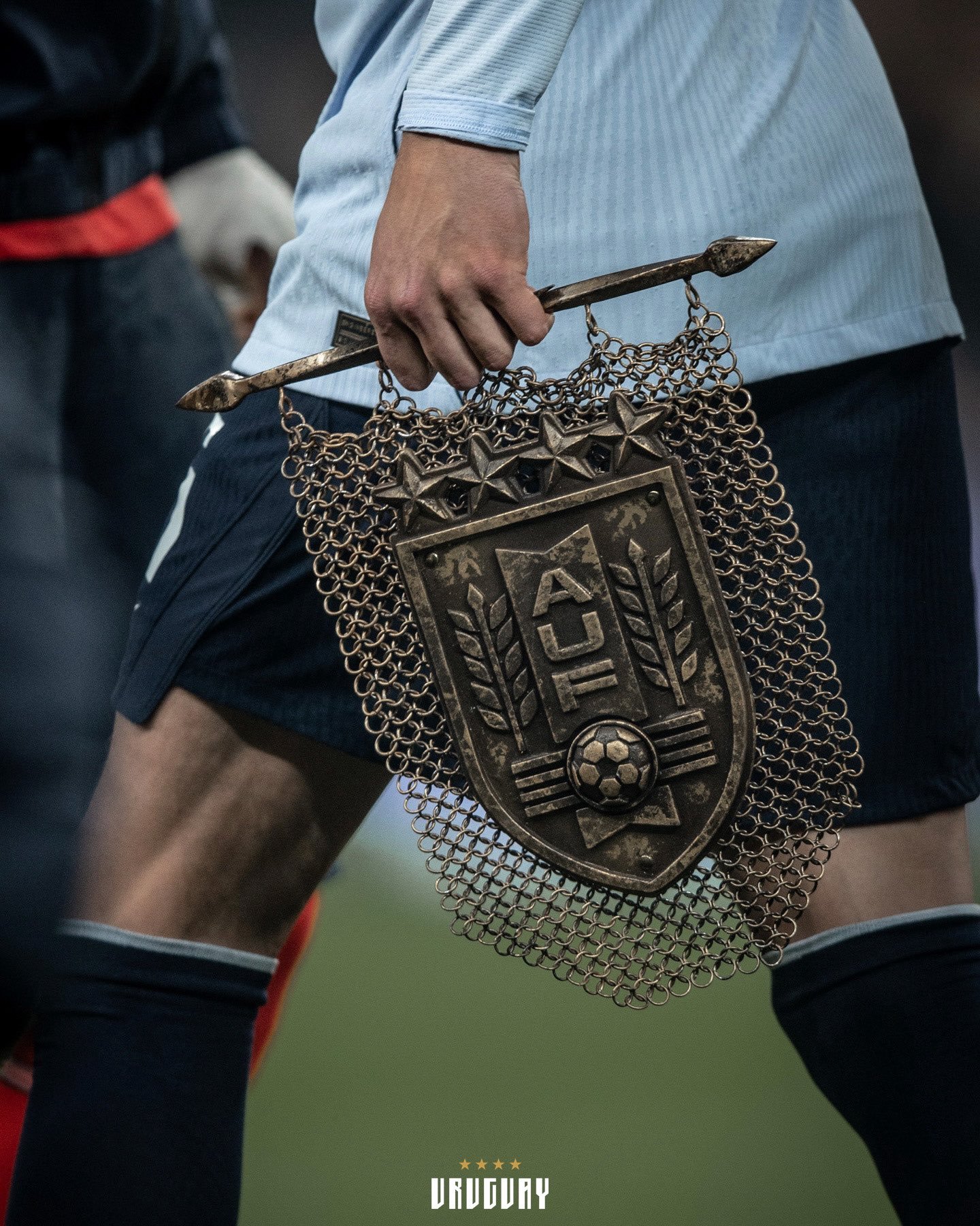 Inspirado en los valores de garra, resistencia y honor que han caracterizado a Uruguay a lo largo de su historia futbolística, el banderín evoca una coraza medieval. La elección no es casual: la Asociación Uruguaya de Fútbol apunta a reforzar la identidad del equipo como un “guerrero” dentro del campo de juego, en línea con la mística que se remonta a gestas como el histórico triunfo en el Mundial de 1950.