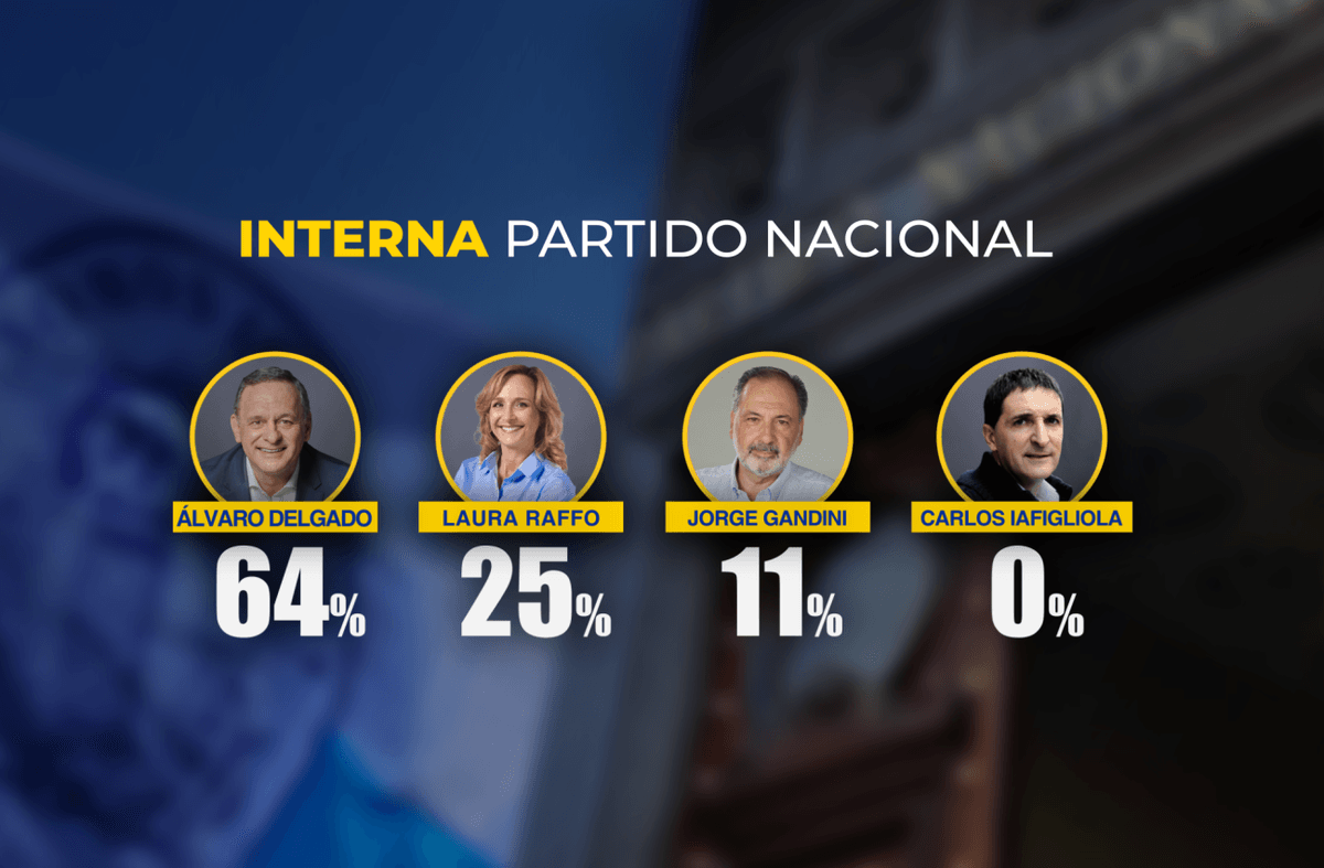 Interna del Partido Nacional: Álvaro Delgado 64%, Laura Raffo 25% y Jorge Gandini 11%