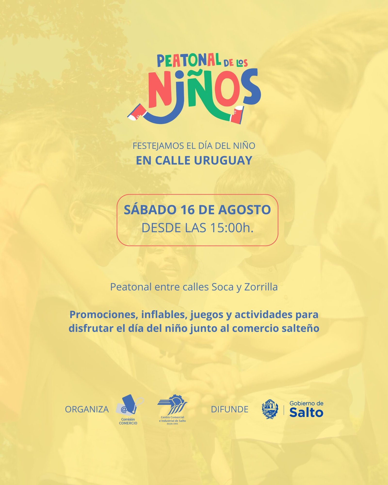 Este sábado 16 de agosto, la tradicional calle Uruguay se transformará en un gran espacio de encuentro familiar con la realización de la Peatonal de los Niños 2025, una propuesta organizada por la Comisión de Comercio – Centro Comercial e Industrial de Salto, con el apoyo del Gobierno de Salto, que invita a disfrutar de una tarde especial en la previa del Día del Niño.