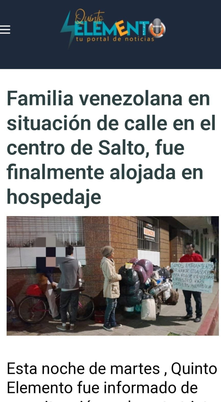 El día lunes 7 de agosto, se traslado parte de la familia, la madre y los adolescentes con pasajes de MIDES, a la ciudad de Rivera donde los esperaban para ubicarlos en su nuevo lugar de residencia.