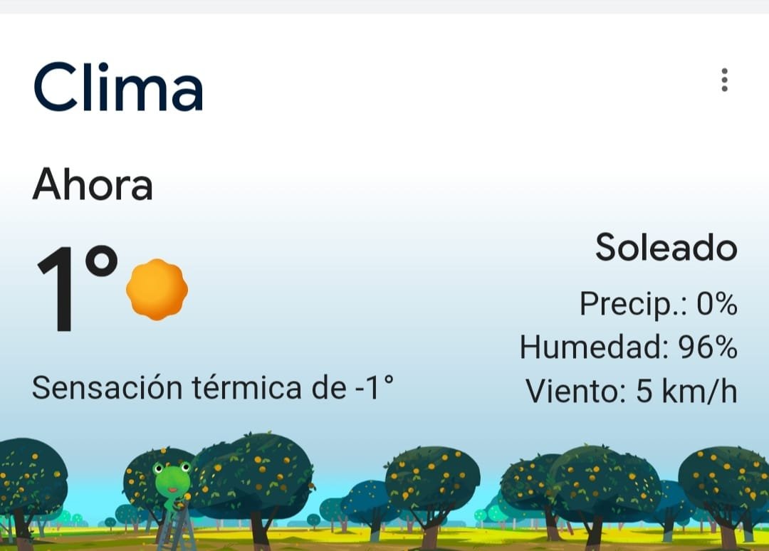 El sábado se espera una mañana muy frÃa con heladas y posterior formación de nieblas y neblinas aisladas. La tarde seguirá frÃa a ligeramente fresca con cielo parcialmente nublado y marcado descenso nocturno de temperatura.