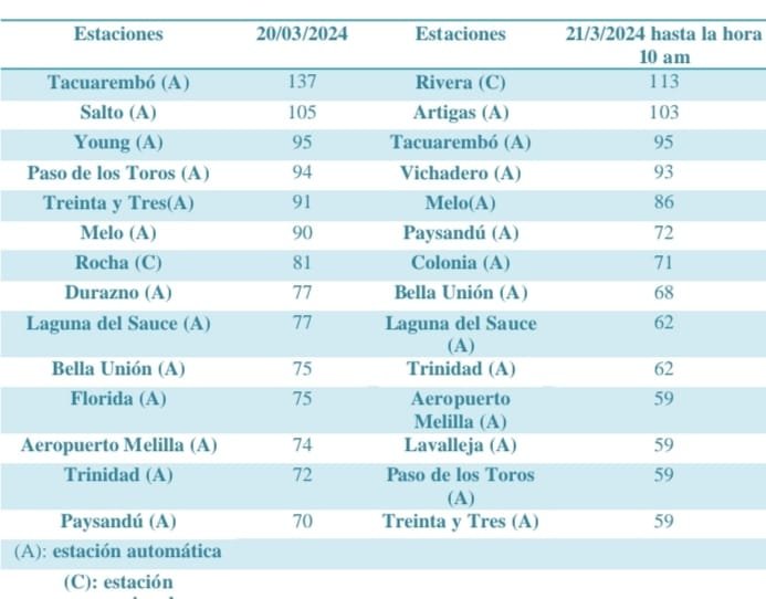 Dirección Nacional de Aguas (DINAGUA) y el Sistema Nacional de Emergencias (Sinae) debido a los potenciales impactos que podrían tener estos fenómenos.