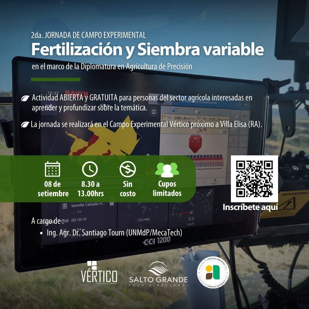 Como parte del dictado de la Diplomatura en Agricultura de Precisión y Nuevas Tecnologías, el Polo Binacional de Salto Grande y la Universidad Nacional de Lomas de Zamora promueven la “Jornada de Campo sobre Fertilización y Siembra Variable”.