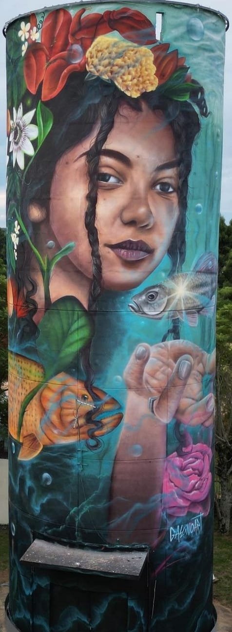 El artista presentó la obra que rinde homenaje a la madre naturaleza, representando a una mujer criolla sumergida en un espejo de agua rodeada de fauna y flora, concientizando de esta manera sobre la importancia del cuidado del agua y el ambiente.