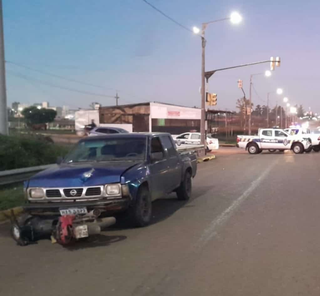 A la tarde de este sábado en la Oribe y kilómetro 4 una camioneta y una moto terminaron con el conductor del birrodado en estado grave.