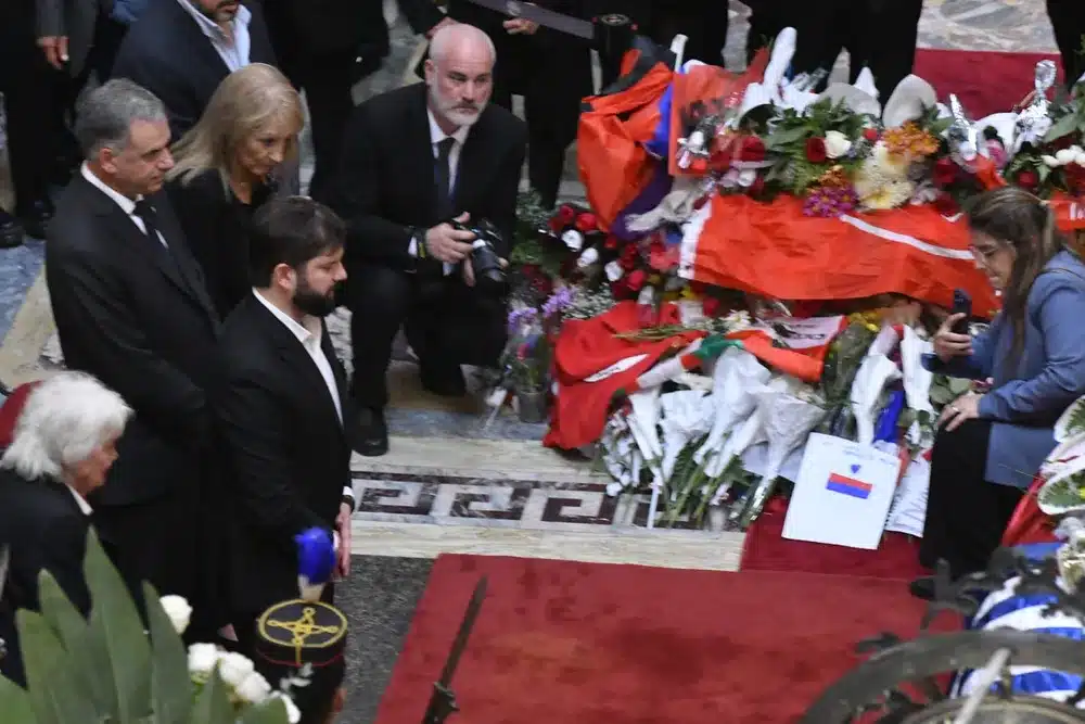 El presidente chileno, Gabriel Boric, acudió al mediodía de este jueves 15 de mayo al velorio del expresidente José Mujica en el Palacio Legislativo.