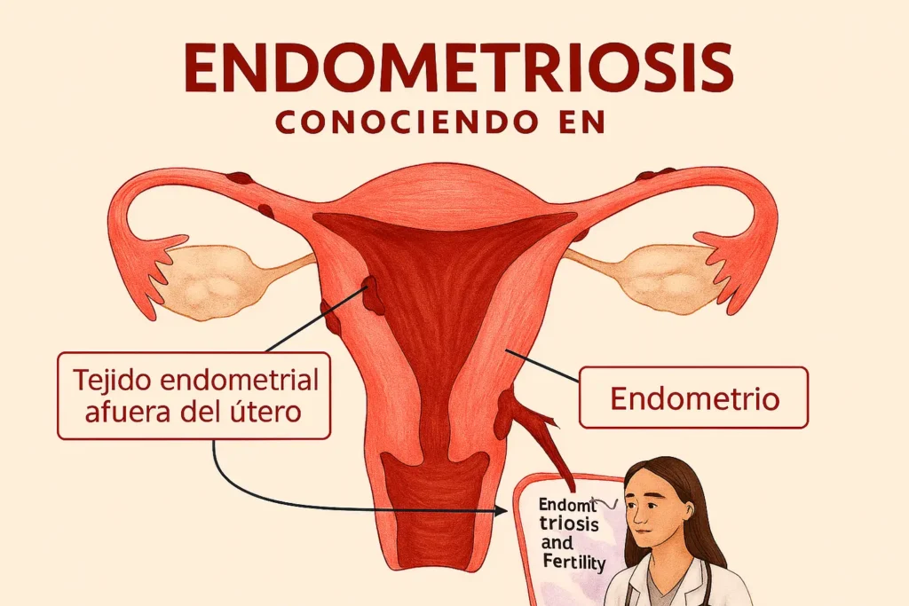La endometriosis es una enfermedad crónica y benigna donde tejido similar al endometrio (revestimiento uterino) crece fuera del útero, comúnmente en la pelvis. Causa inflamación, dolor pélvico intenso (especialmente durante la menstruación o relaciones sexuales), infertilidad y fatiga. Se trata con medicamentos o cirugía.