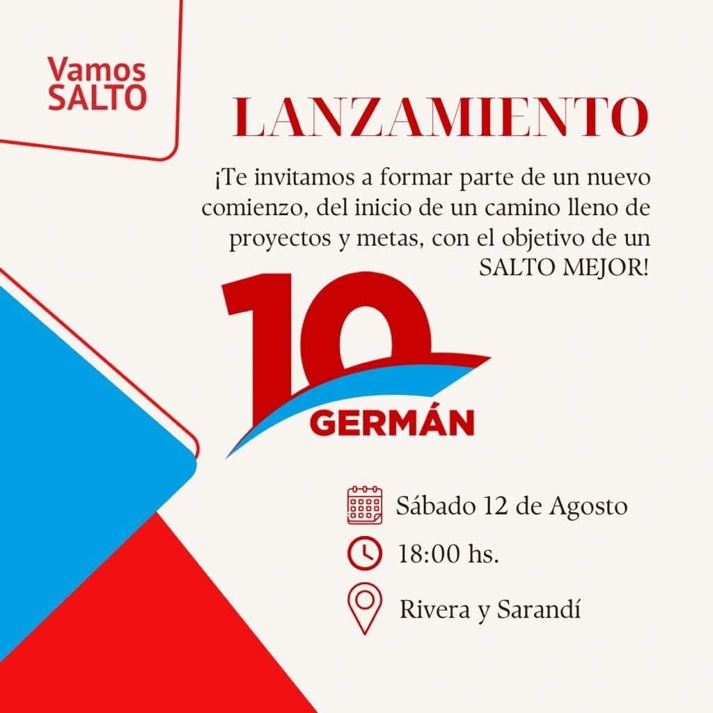 Se lanza públicamente un nuevo grupo político: colorado, batllista, de acción y trabajo. Es la conjunción de ciudadanos de todo el espectro político, jóvenes y adultos llenos de proyectos y metas, plenos de ideas e ilusiones, recargados con ganas y compromisos, en el ámbito de Vamos Salto del Partido Colorado y con el liderazgo de Germán Coutinho, que largan la carrera hacia las internas partidarias.
