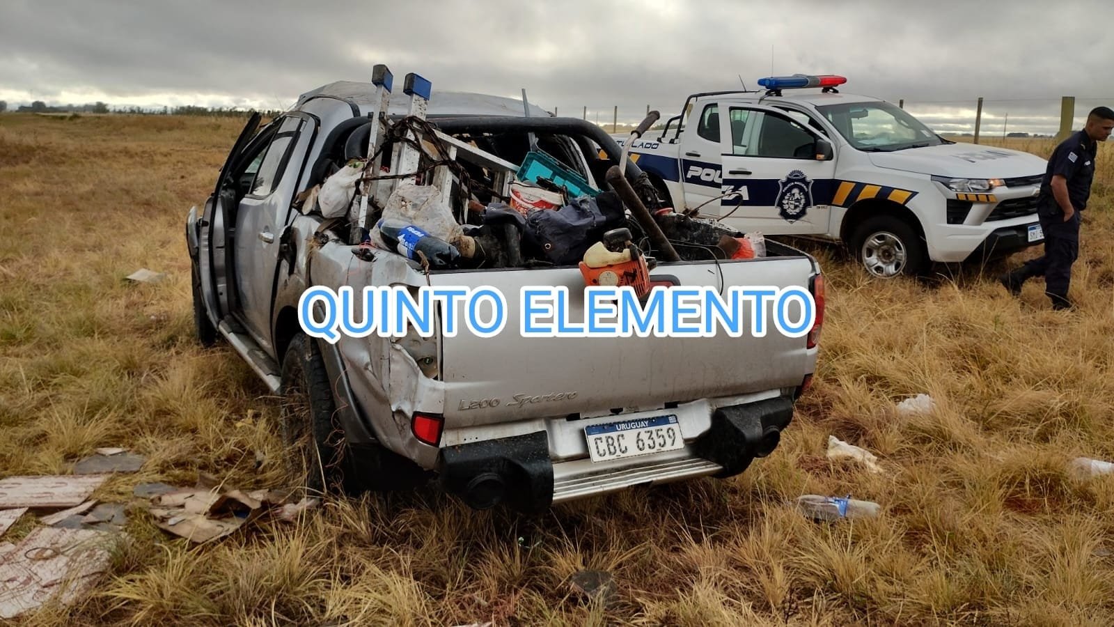 El vuelco fue de una camioneta, mat. Rocha, circulaba de Este a Oeste, Barra del Chuy a Salto, cinco ocupantes, tres mayores y dos menores, de 8 y 6 años, Politraumatizados, resultaron cuatro de los ocupantes, acompañante hermano mayor quedó en el lugar ileso.