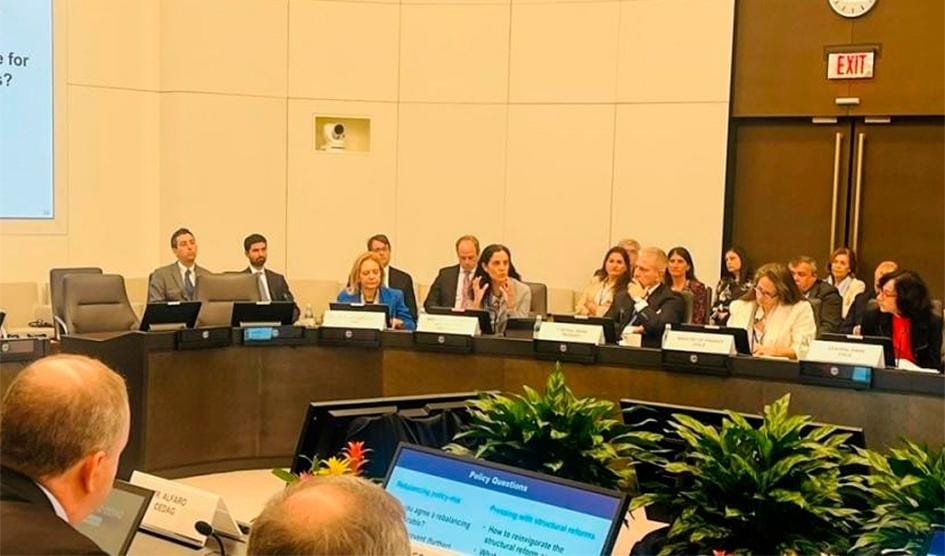 Asimismo, concurrieron a las reuniones la representante uruguaya ante el FMI, Inés Bustillo, y su par ante el Banco Interamericano de Desarrollo (BID), Santiago Cat. Arbeleche mantuvo encuentros con el presidente del BID, Ilan Goldfjan, y la presidenta del Banco Europeo de Inversiones (BEI), Nadia Calviño.