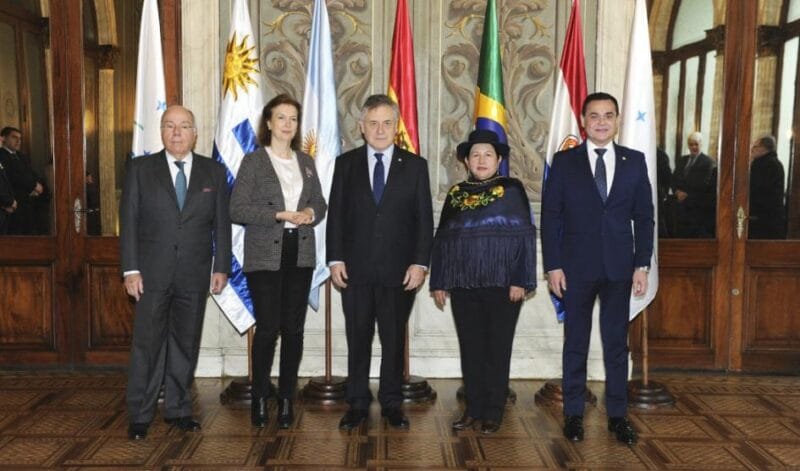 El encuentro, realizado en el Palacio Santos, sede la Cancillería uruguaya, incluyó la participación de los cancilleres de Argentina, Diana Mondino; del Estado Plurinacional de Bolivia, Celinda Sosa; de la República Federativa de Brasil, Mauro Vieira; de la República del Paraguay, Rubén Ramírez Lezcano, y de la República Oriental del Uruguay, Omar Paganini.
