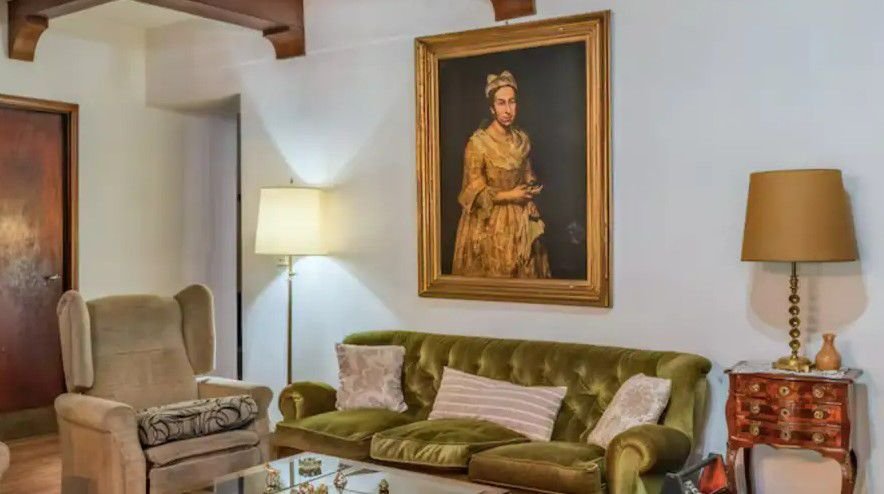 En las fotos de la publicación de la agencia inmobiliaria Robles Casas & Campos, que ya fue dada de baja, podía verse la pintura expuesta en el salón principal de la vivienda, colgada encima de un sillón verde.