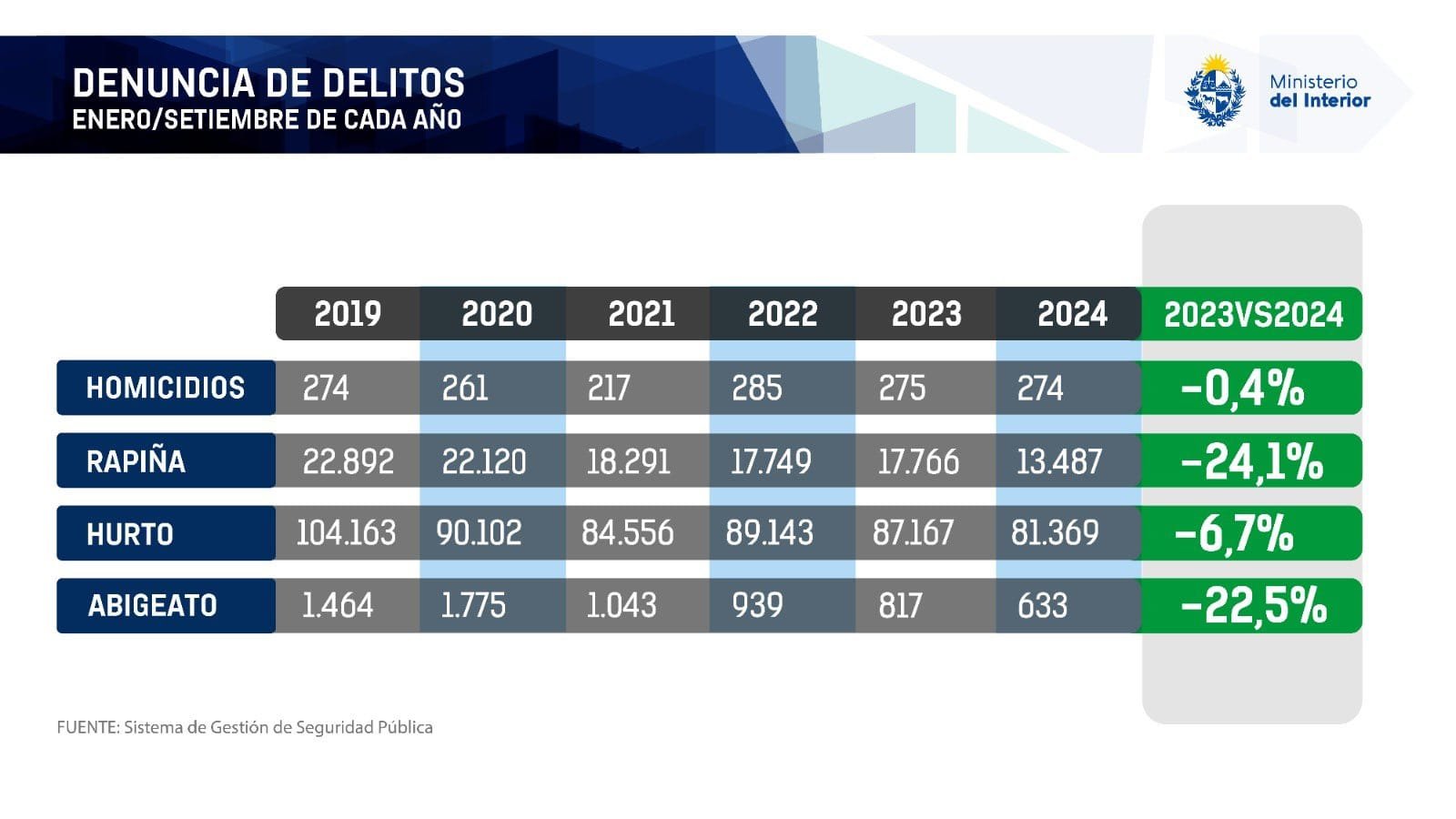 Las rapiñas bajaron 41,1% respecto a 2019, son 9.000 rapiñas menos.