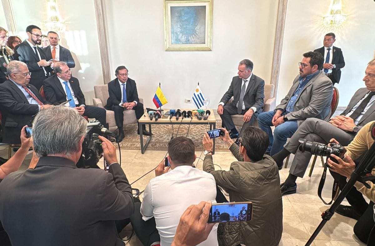 Petro estuvo reunido anteriormente con Luis Lacalle Pou en la residencia de Suárez y Reyes. Del encuentro participaron, además, el canciller Omar Paganini, y una delegación de Colombia encabezada por el vicecanciller del referido país, Jorge Rojas.