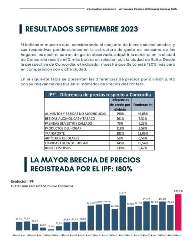 la perspectiva de Concordia, el indicador muestra que Salto está 180% más caro