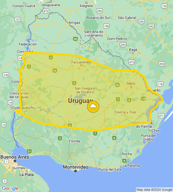 Descripción: Perturbación atmosférica asociada a masa de aire húmeda e inestable afecta el país, generando tormentas algunas puntualmente fuertes. Cabe destacar que en zonas de tormentas se podrán registrar lluvias abundantes en cortos períodos, ocasional caída de granizo, intensa actividad eléctrica y rachas de vientos fuertes. Se continuará monitoreando la situación y se informará ante eventuales cambios.
