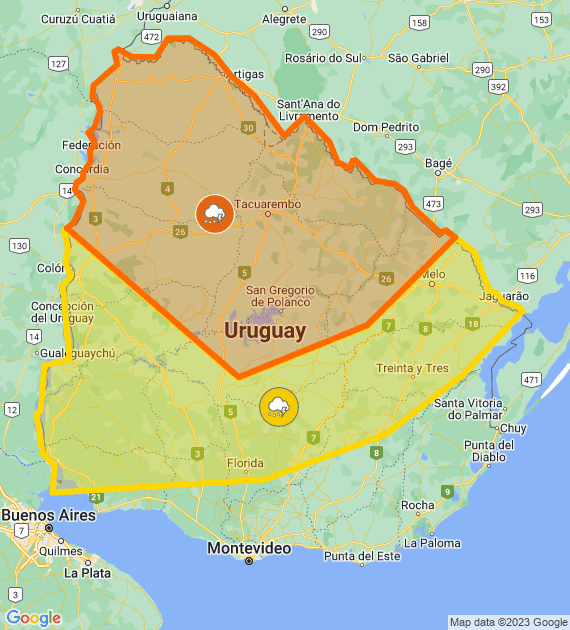 Alerta naranja y amarilla por Tormentas fuertes y lluvias intensas