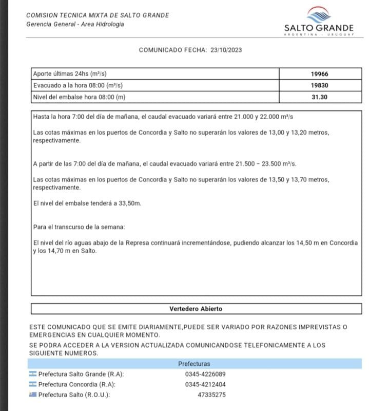 Comparte esta nota: Compartir en X (Twitter) Compartir en Facebook Compartir en Email Compartir en WhatsApp Navegación de entradasEl Amor De Los LocosContinúa subida del río,Salto Grande informa cota máxima en Puerto de Salto hasta 7 am de miércoles: 13,20 MTS, después de 7am : 13,60