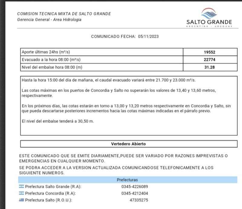 Alerta Amarilla en Salto para : Cayetano, Fernández, Lluveras, Migliaro, Quintana y Sarandí de Arapey,prox. actualización 15:30 p.m Mar 21, 2026 Quinto Elemento