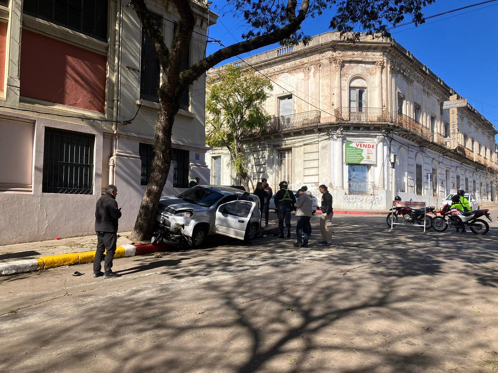 Esquina de Brasil y Zorilla en el mediodía salteño. Y testigos una vez más de la irresponsabilidad de quién venía por calle Brasil y no respetó detener la marcha . En este caso el motonetista. Si se observa quedó debajo del tren delantero del vehículo .El motonetista fue politraumatizado y trasladado a emergencia Hasta el momento no hay informe de la unidad de emergencia ni de policía.
