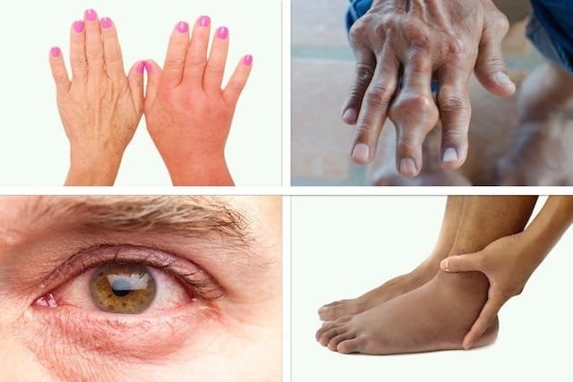 - Dolor en: Articulaciones, dolor intenso asociado a hinchazón. Cabeza. Espalda. Músculos.