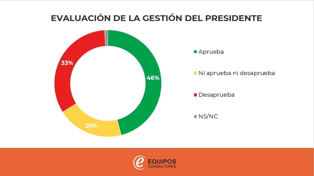 En agosto, algo menos de la mitad de la población (46%) aprueba la forma en que Lacalle Pou se está desempeñando como presidente, y un tercio (33%) la desaprueba. Una quinta parte de los uruguayos (20%) tiene juicios intermedios, y 1% no opina.