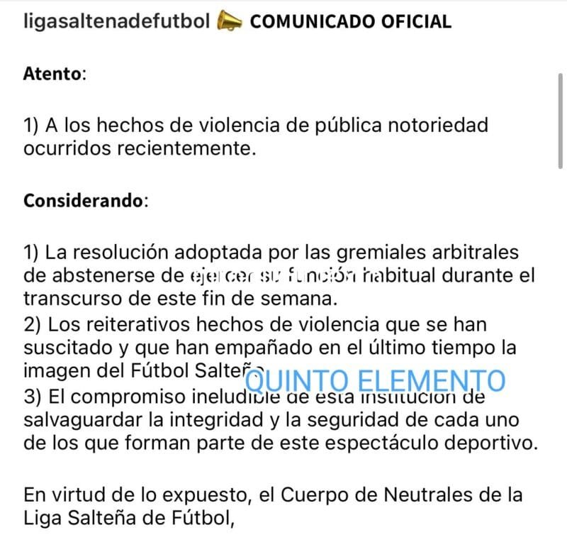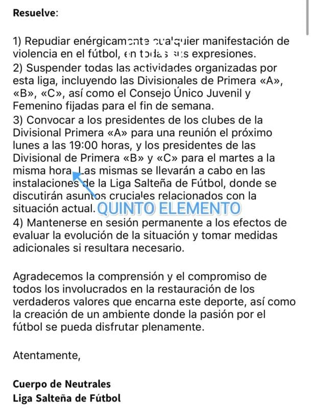 En solidaridad con los árbitros que habían tomado la medida de no arbitrar y con buen tino también, buscar el diálogo para abordar esta problemática, por eso suspensión en las divisionales A, B,C ,Consejo Único y Femenino .