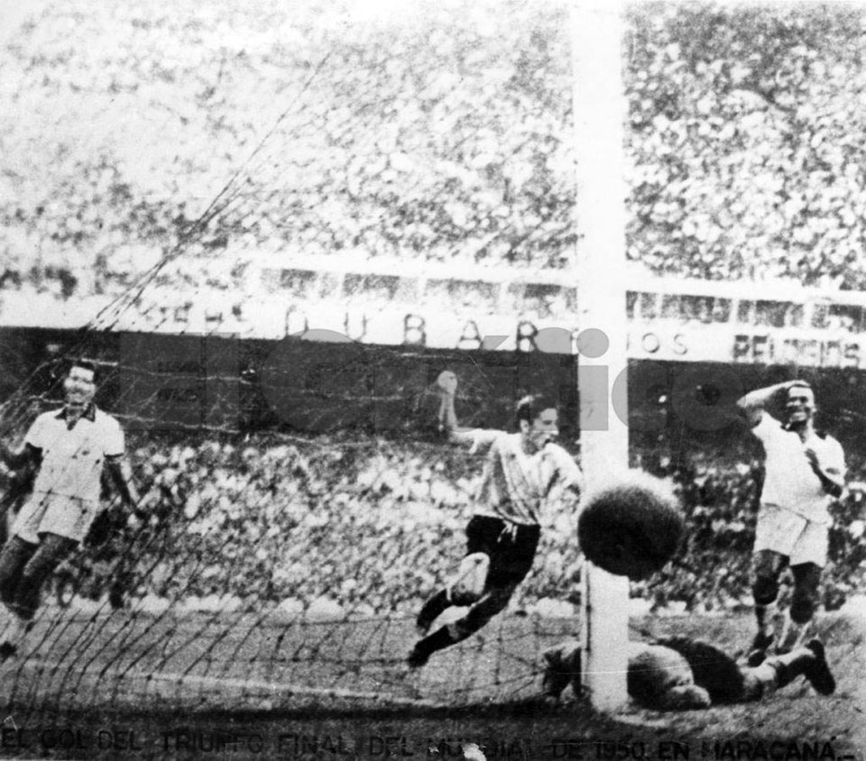 Maracanazo en Río de Janeiro. La selección uruguaya derrota a la brasileña y se queda con el campeonato mundial de fútbol. El título se define en un cuadrangular, no en una final. Brasil y Uruguay se miden en el último partido. España y Suecia ya no tienen chances y los locales llegan con un punto más, con lo que les alcanza el empate para ser campeones. Uruguay debe ganar para dar la vuelta. Friaça abre el marcador a los dos minutos del segundo tiempo ante casi 175 mil espectadores, la mayor concurrencia jamás registrada en un estadio. Juan Alberto Schiaffino iguala a los 20. Cuando faltan once minutos para el final, un disparo de Alcides Ghiggia se convierte en el gol del triunfo charrúa. La desolación brasileña es total. A tal punto, que después del partido se cambia el color blanco de la camiseta y se lo reemplaza por el actual amarillo con vivos verdes. Ghiggia falleció a los 88 años el 16 de julio de 2015, exactos 65 años después de su histórico gol.