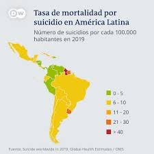 El informe muestra una amplia diferencia entre los países de la región. Por ejemplo, el segundo lugar es ocupado por Cuba con un índice de 13,8 suicidios cada 100.000 habitantes, mientras que Venezuela se ubica tercero, alcanzando 8,6. En contraste, Perú registra la tasa más baja, con apenas 1,5 casos cada 100.000 habitantes.