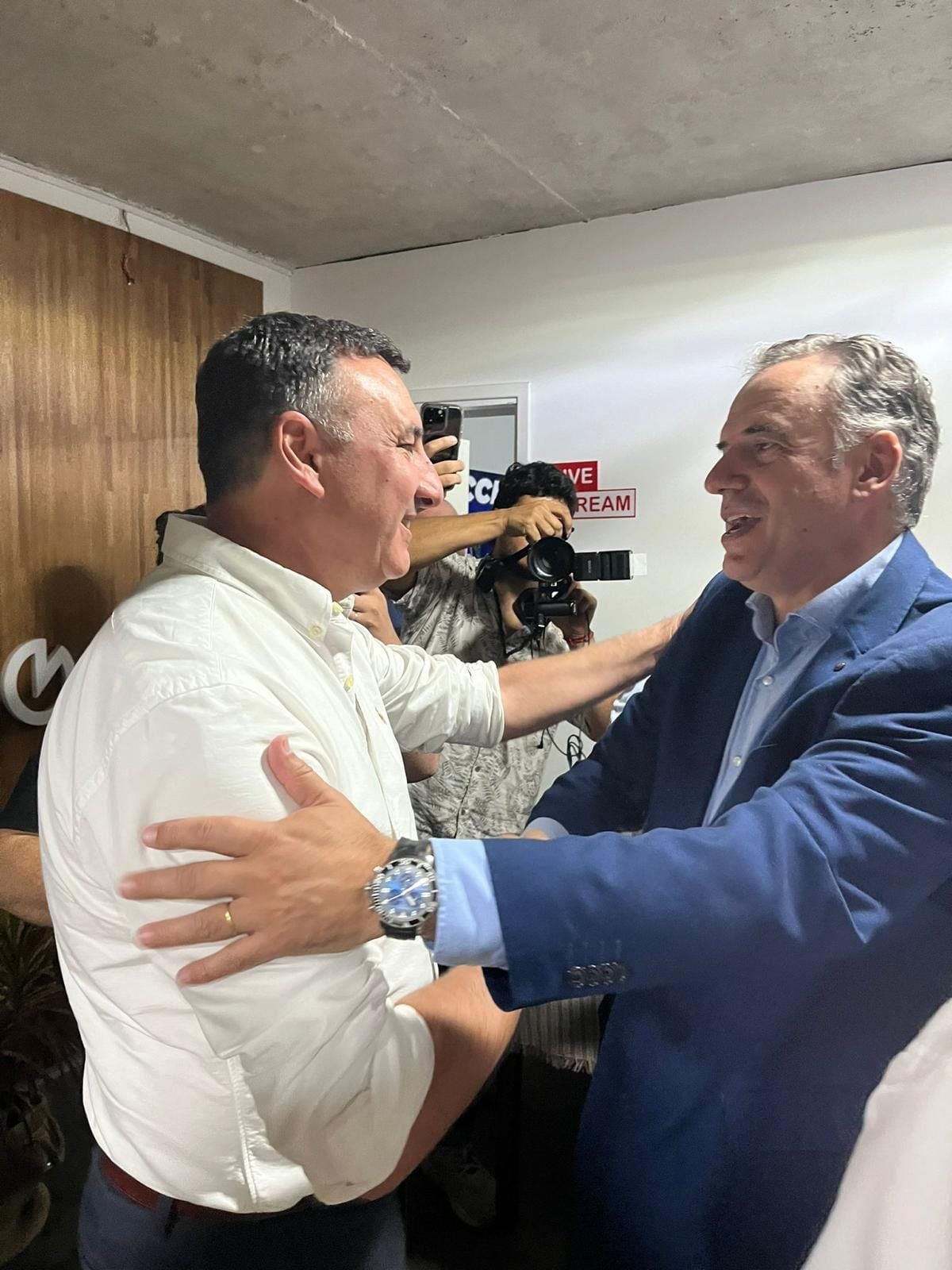 Este jueves, mientras el candidato a la intendencia de Salto por la Coalición Republicana, Carlos Albisu, salía de una entrevista en Radio Arapey, se encontró con el presidente de la República, Yamandú Orsi y quedó registrado el momento en donde ambos se saludaron afectuosamente.